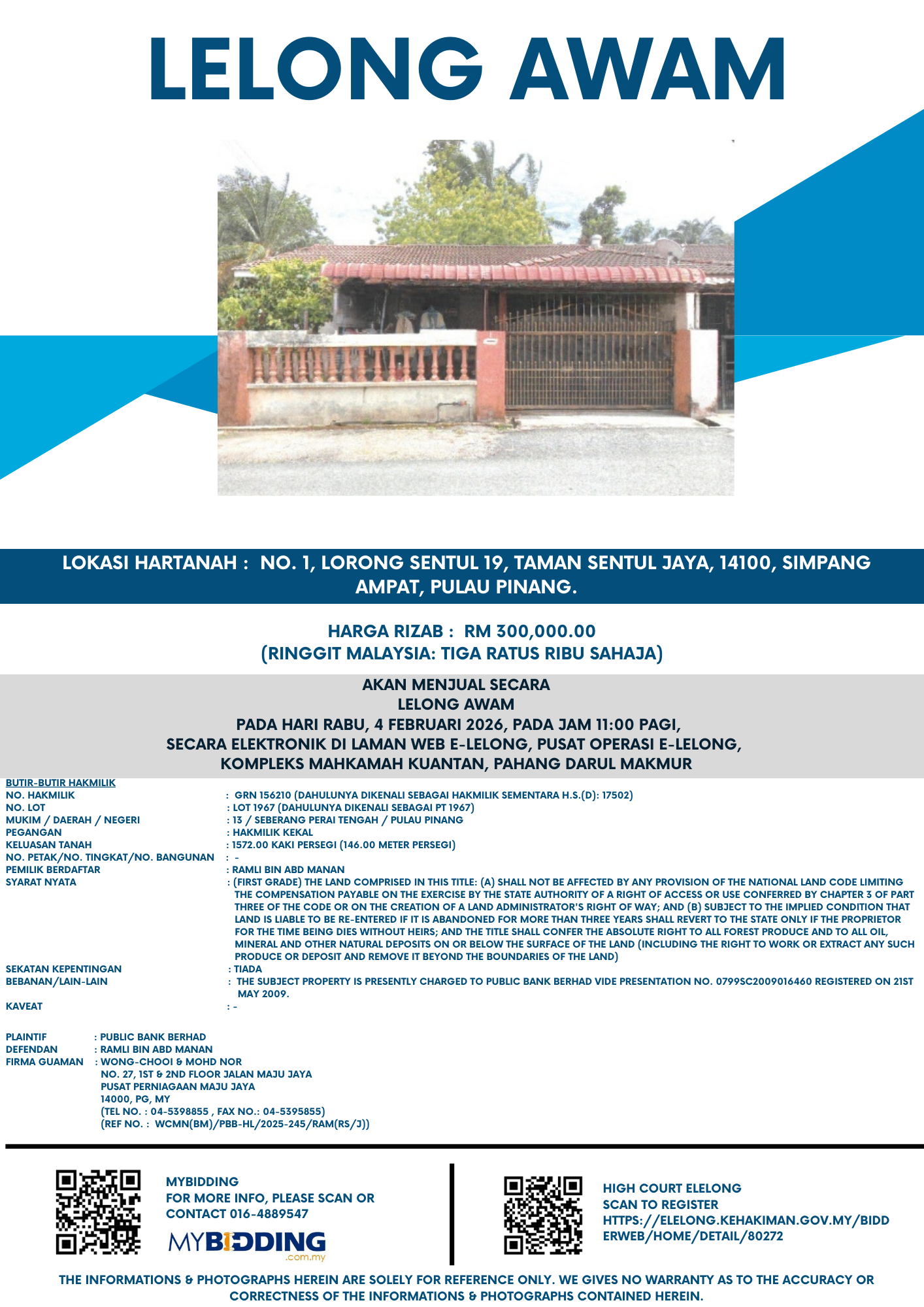 RM580,000 | Feb 04, 2026 | Wed